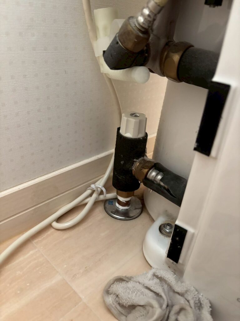 もともとついていたタンクレストイレの給水栓が隠ぺい式だったので給水配管を移設する必要がありました。
