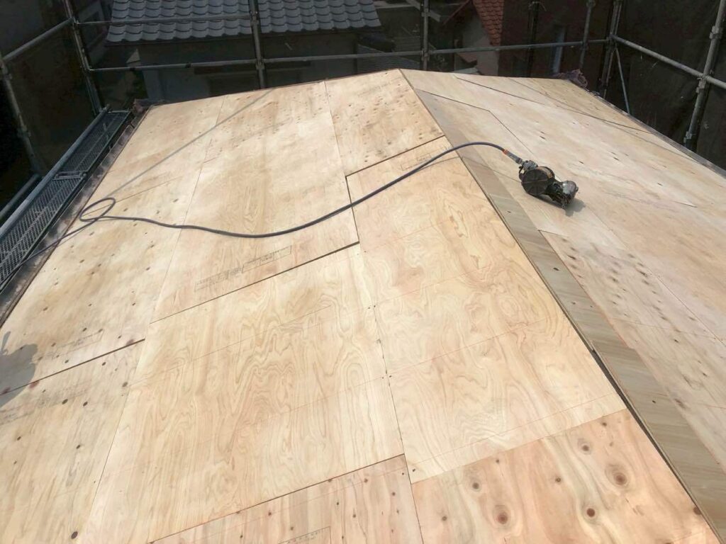 野地板(屋根の下地板)を増貼り(重ね張り)しております