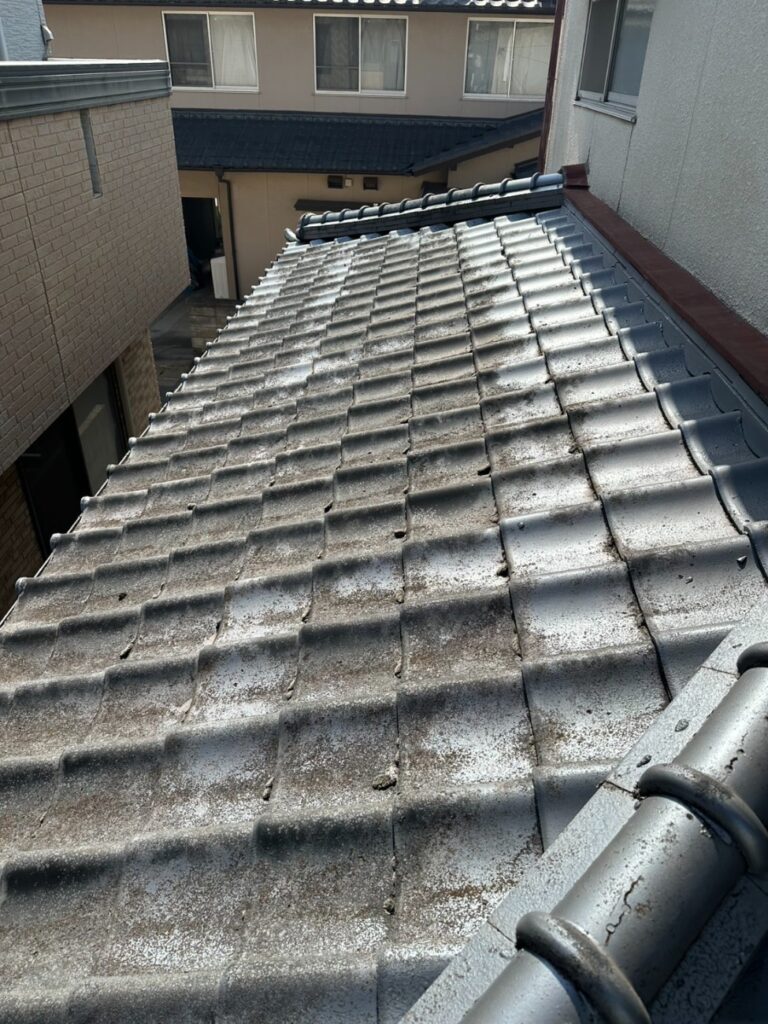 セメント瓦にコケやひび割れなどの劣化が確認できる状況でした。このまま放置すれば雨漏りにつながる危険な状態でした