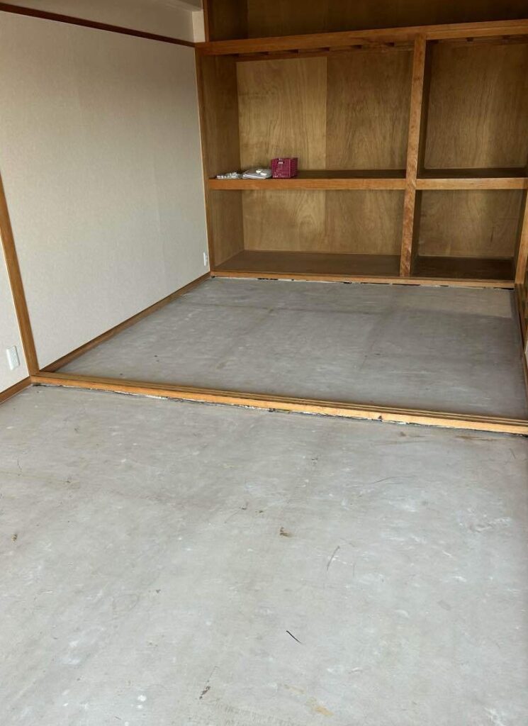 畳を撤去した状況です。 畳の下はコンクリートになっています。