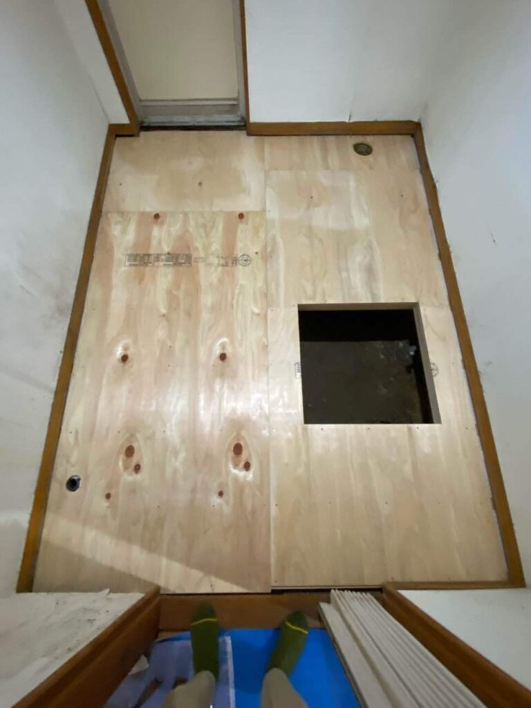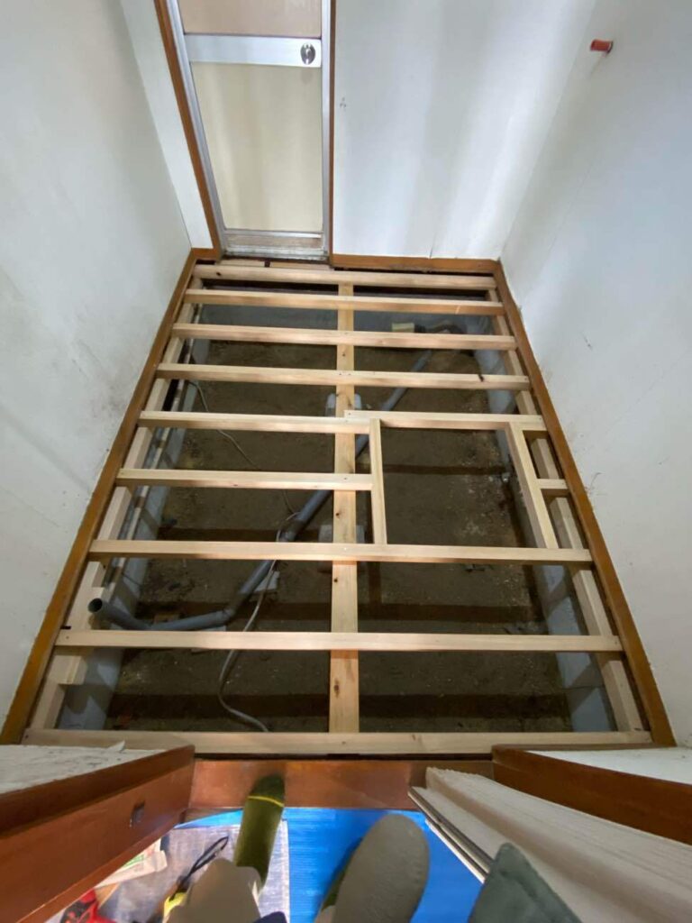 今回の工事はキッチン・廊下の床の軋みが発端であり、洗面脱衣所の床も気になっていました。
