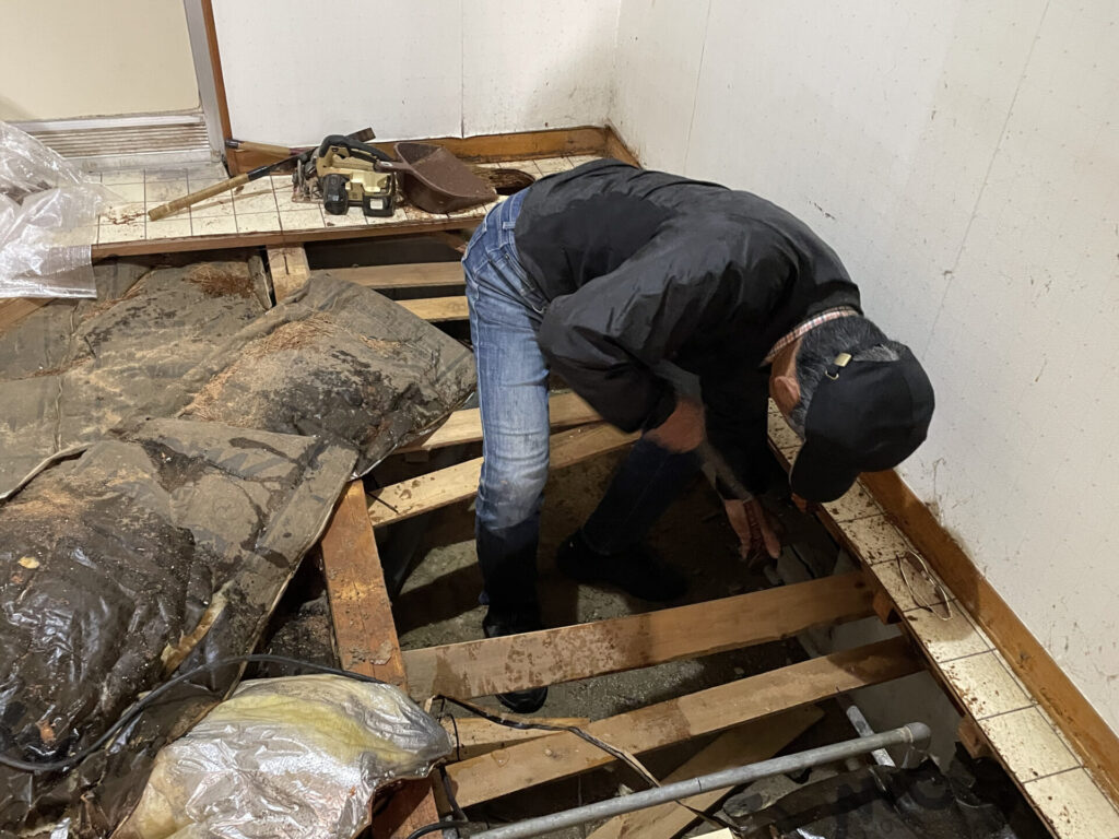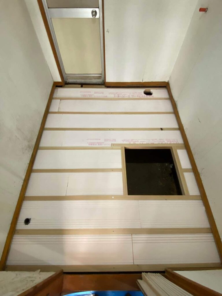 床下点検口もなかったので確認方法がなく、やむおえない状況でしたが、迅速な対応が求められました。 -
