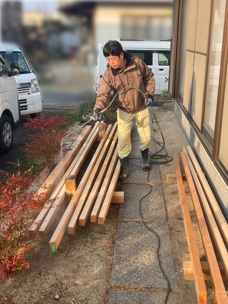 新設予定の木部にも同様の薬剤を散布します。