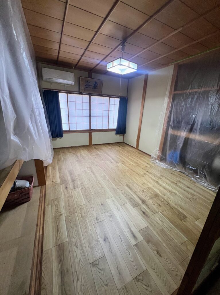 床を張替終わったときの写真です。 畳とは違う、新しく洋な空間に生まれ変わりました。