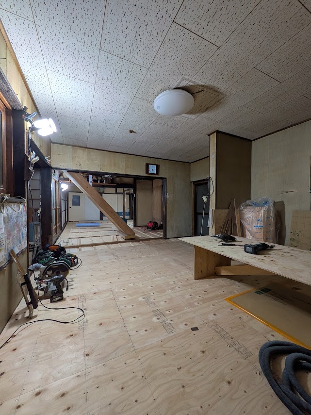 大工工事③ フローリングを貼りきれいな床に仕上がりました。