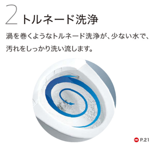 トルネード洗浄で、節水トイレであるにも関わらず汚れをしっかりと洗い流すことができます。