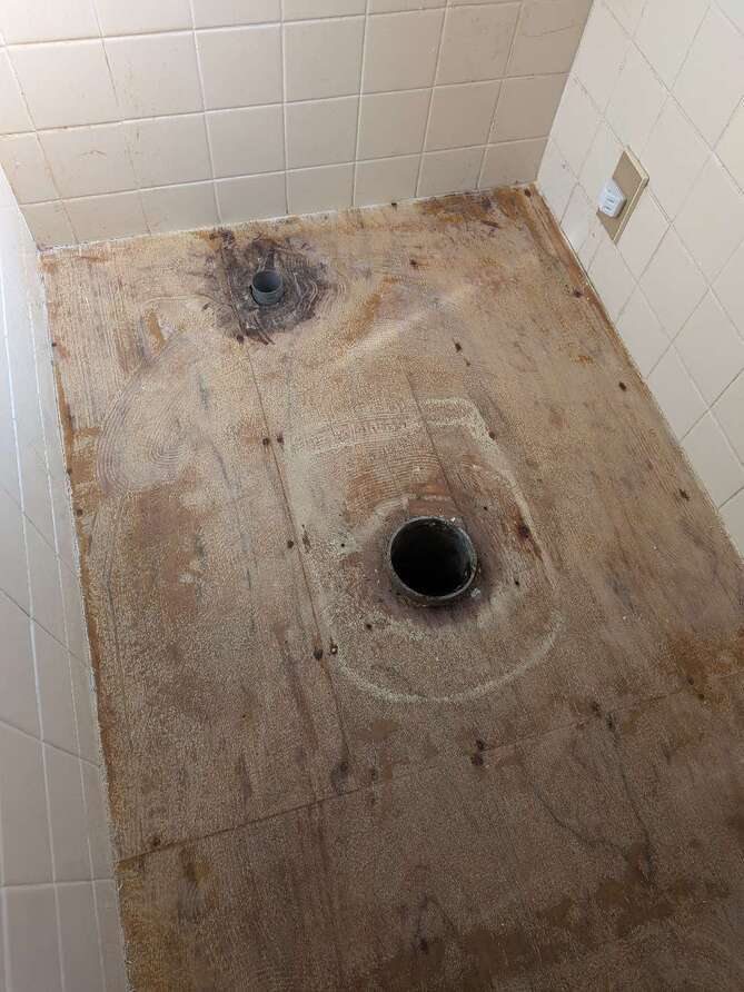 床材を剥がしてみると、排水回りに劣化がみられました。