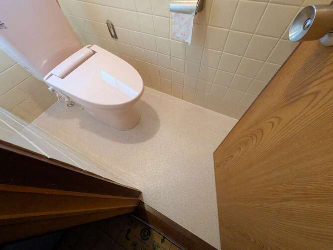 新しい床材(クッションフロア)と新しいトイレを設置して工事は完了です。