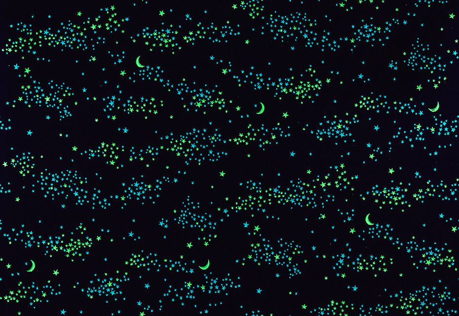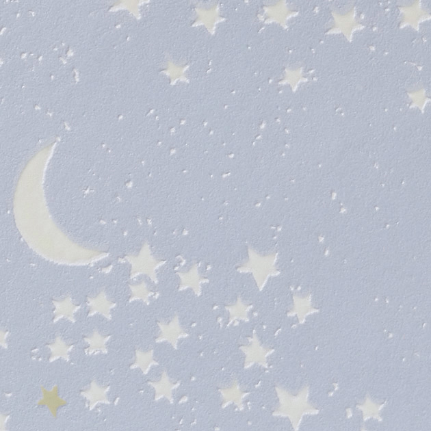 FE76864 星空の蓄光クロスです。 部屋が明るいときは水色のクロスが貼ってあるように見えます。
