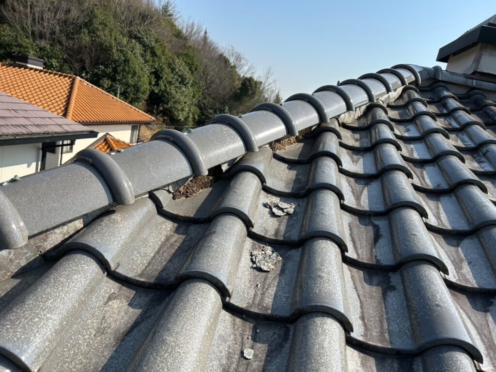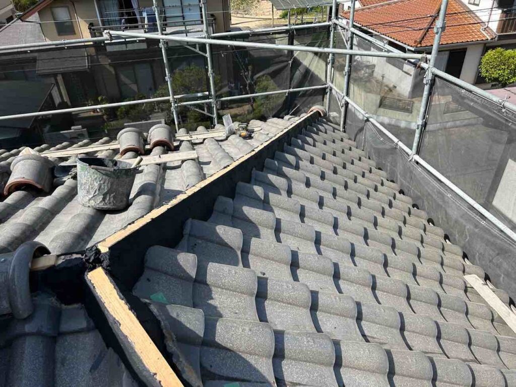 既存の棟は、内部の土が経年劣化によりひび割れており、棟瓦をしっかりと固定できていない状態でした。このままでは強風や地震の際にズレや崩れが発生する恐れがありました。