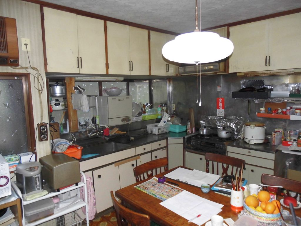 お子様が独立されご夫婦2人で生活されることになり、今まで使用されていたような大きなL型は必要がなくなったのでコンパクトなI型をお勧めしました。以前のL型の収納は壊れて使えない場所があったり使いづらく、入りきらなかったものを上に置いてしまい物が溢れている状態でしたので、収納量がたっぷりと確保できる商品をご提案。実際にショールームで実物を見ていただき、使いやすさ、収納量に満足いただけて商品の決定となりました。以前はガスコンロでしたが、元々電気温水器を使用されていたのでこれを機にIHに変更、オール電化住宅になりました。収納スペースが増えたことでキッチンまわりがとてもスッキリして、使いやすく、毎日の家事が楽しいと満足していただけました。使用されて30年以上経過し、汚れが目立っていた壁紙や床の貼り替えも同時にご提案しました。