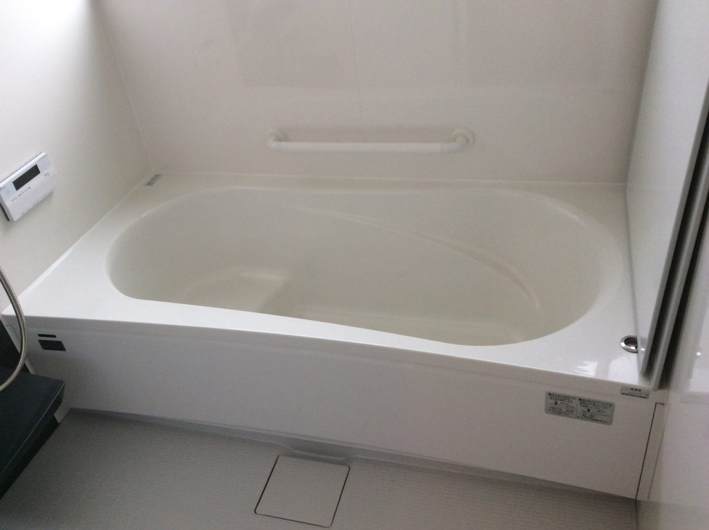笠岡店の展示コーナーでシステムバスを実際に体感していただき、ホーローと床材の強さを気に入られタカラスタンダードのものを選ばれました。身長の高いご主人が足を伸ばして入浴できるように1616サイズをご提案しました。お子様がまだ小さいので、浴槽はステップ(段差)があるタイプに。ステップを階段がわりにして1人で出入りができたり、腰掛けて半身浴も楽しんでいただけます。壁パネルのカラーはご主人のこだわり。メーカーショールームでご家族で納得いくまで悩まれました。清潔感のあるホワイトをベースに、ダークグレーストライプをアクセントにしたスタイリッシュな空間に。カウンターや水栓、収納棚も色を合わせて統一感を出しました。「念願の浴室暖房乾燥機を設置したことで浴室内がとても暖かくなり、ゆったりと入浴ができるようになった。毎日のお風呂時間がとても楽しみ」と喜んでいただけました。