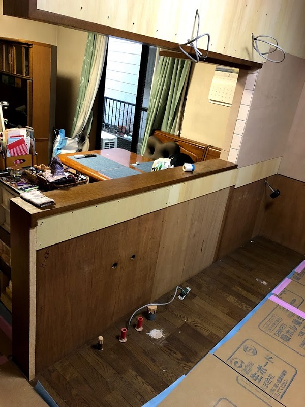 既存のキッチンを解体して水道の配管を仕込んでいます。下地もキレイだったので大きな補修もいりませんでした。