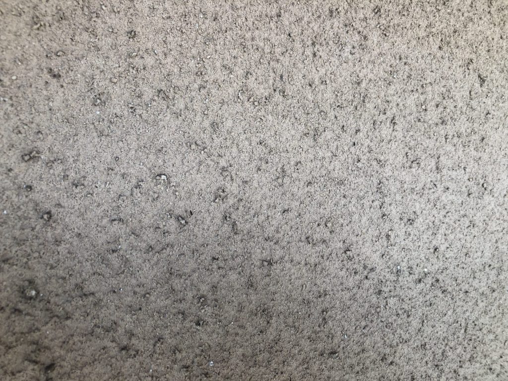 既存外壁はスキン吹付。ざらざらした石が混じったような質感が特徴です。塗膜ももろくなり、触るとボロボロ落ちてきていました…