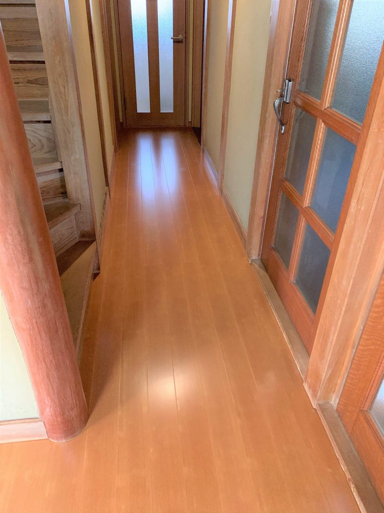 過去にカスケホームで何度も工事をさせて頂いているN様。今回は玄関を入ってからの廊下や広縁の床が沈むようになってきたことがご相談のきっかけでした。玄関や廊下は玄関の顔だからこそお客様としっかり打合せをさせて頂きながら気になる所は再施工をしたりと納得いくまでしっかりと工事をさせて頂きました。明るく丈夫に生まれ変わったことでこれからも安心して生活して頂けますね。