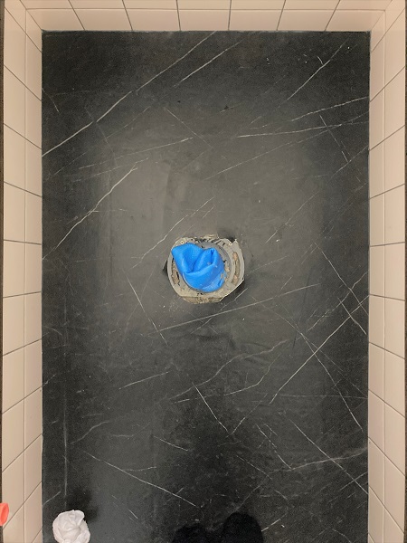 8.再利用する手洗い器と紙巻き器をもとの位置に取り付けました。
