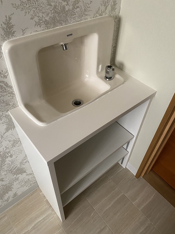 今回手洗い器は既存利用しております。脱着はしておりません。