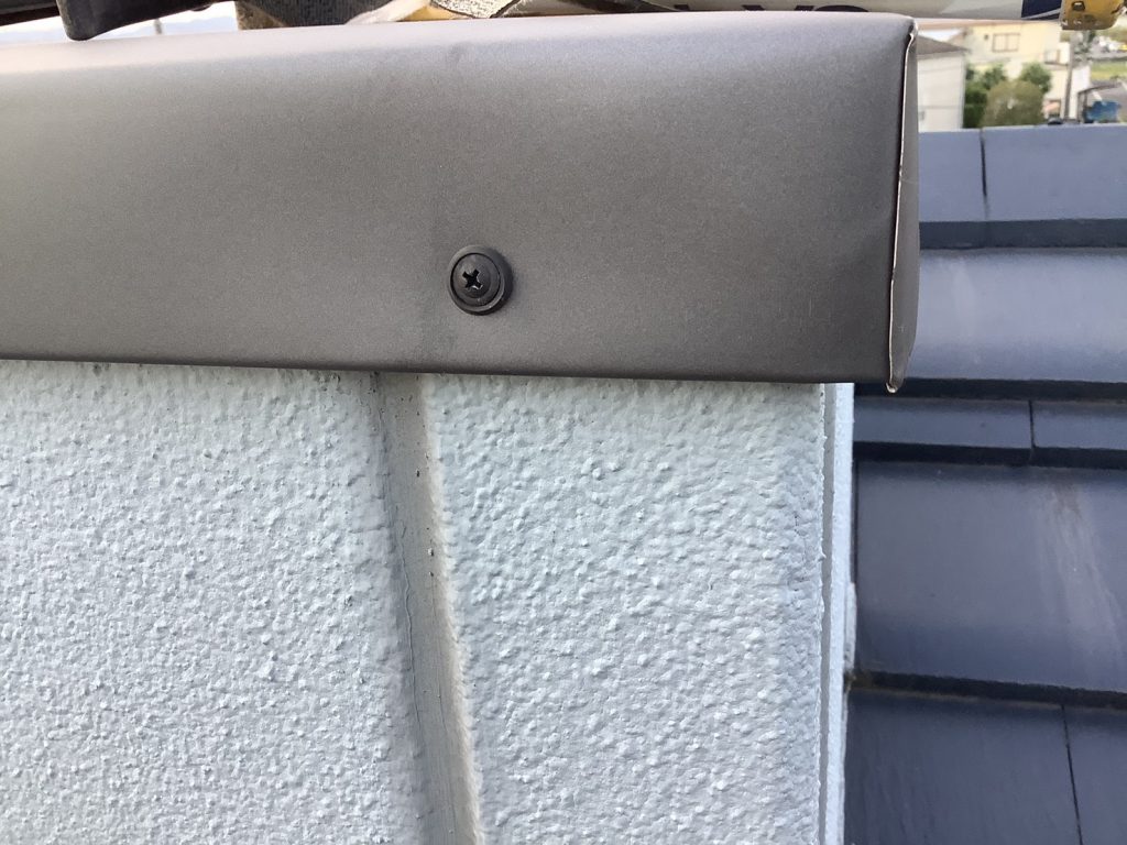 ビス(パッキン付)を天板ではなく横面で留め、雨が入らないように対応しました。