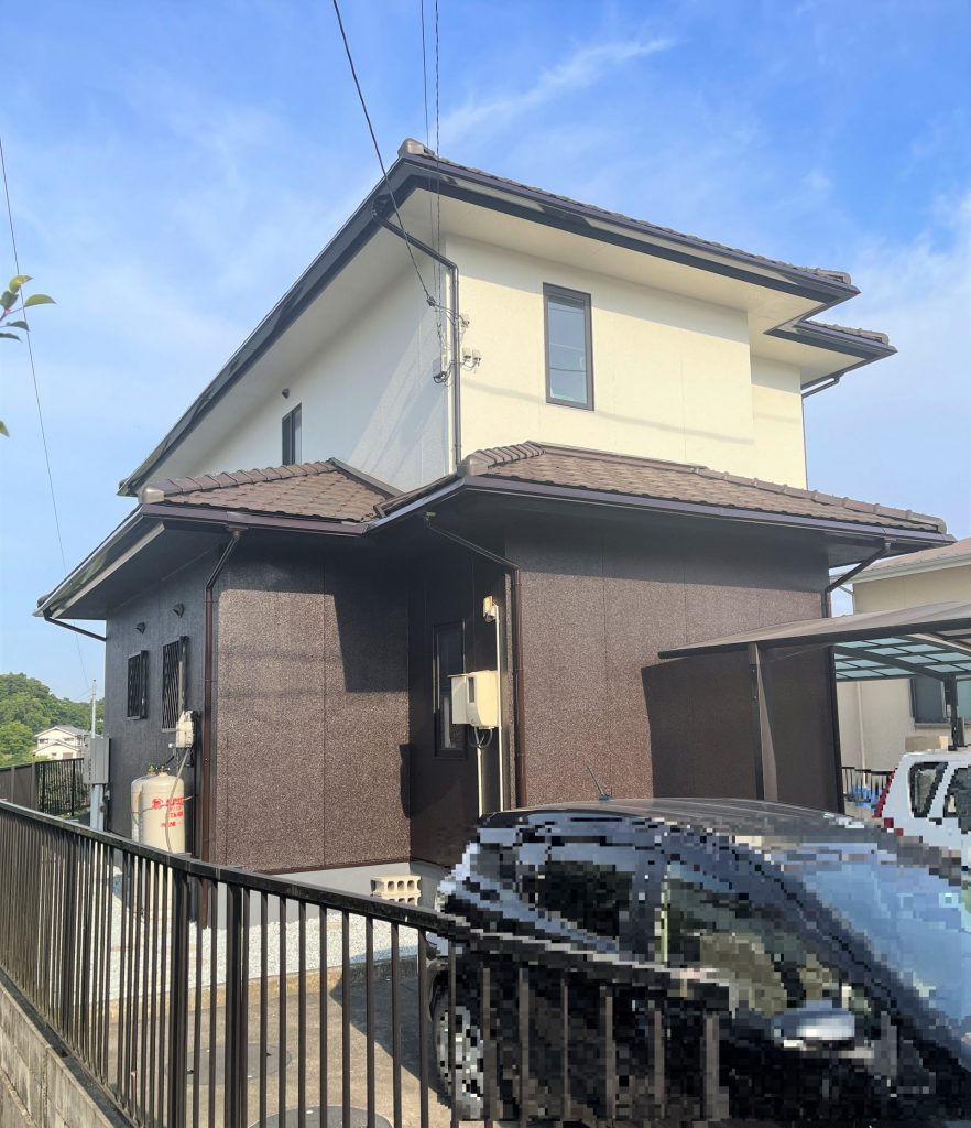 4年前から外構やキッチンなど弊社にリフォーム工事をお任せ頂いているO様。今回は数年前から気になっていた外壁塗装工事をお任せ頂きました。以前の外壁は単色でシンプルでしたが今回は奥様がこだわりたいということもあり色々なパターンでシュミレーションをして上下の塗り分けに決まりました。今回の一番のポイントは1階と2階の間にある胴差と呼ばれる部分の色でした。一般的には上下どちらかの色に合わせるんですが今回はワインレッド色にしました。完成後、イメージしていた通りと大変喜んで頂きました。