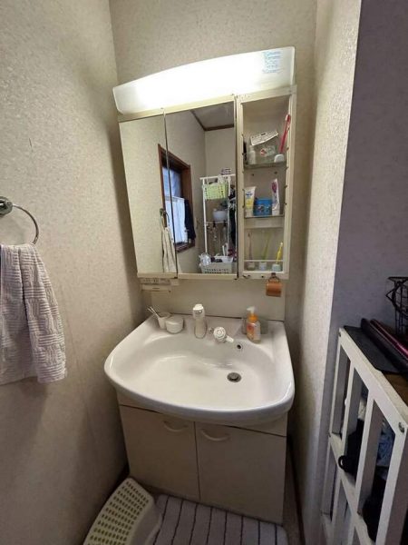 壁から壁まで89㎝あり、規格サイズの洗面化粧台では微妙な隙間があり、ぴったりサイズの化粧台にすることをご提案しました。