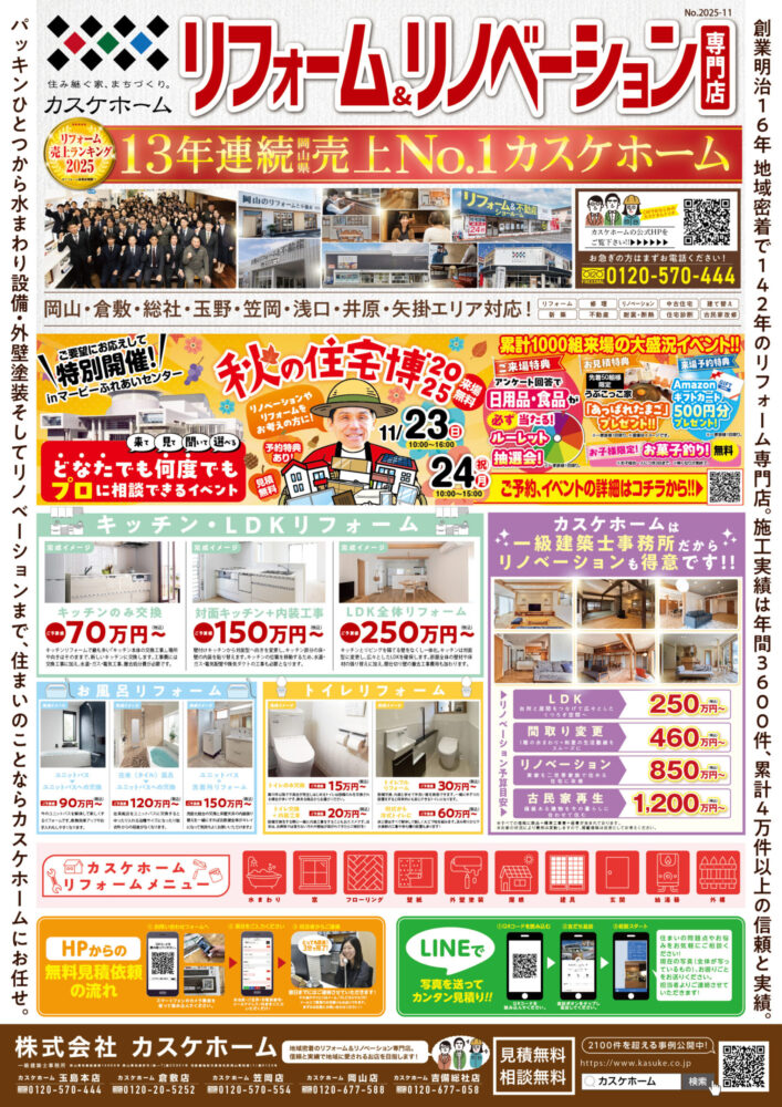 【リフォーム&リノベーション専門店】折り込みチラシを入れさせていただきました(2025.11.7:玉島・笠岡エリア)