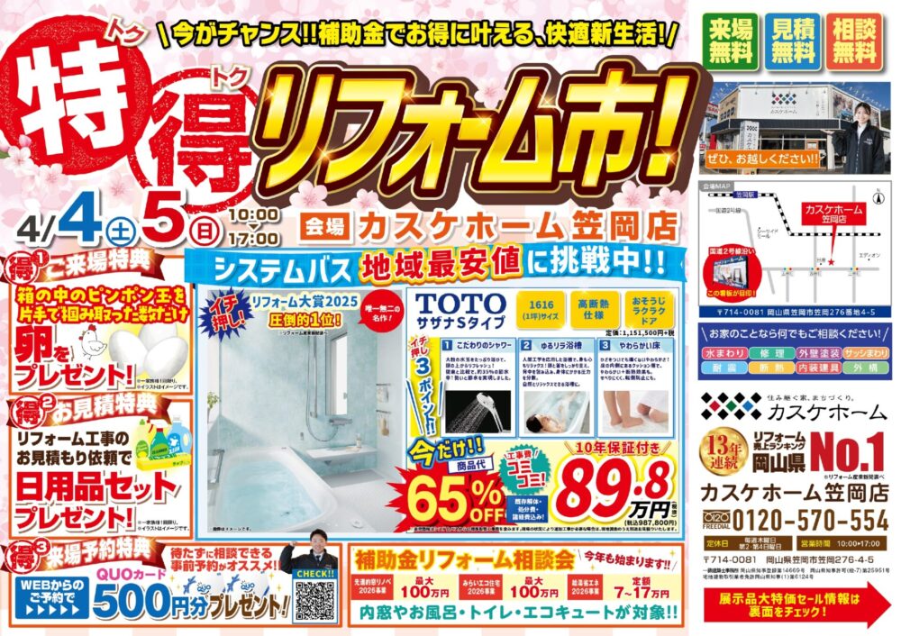 【特得リフォーム市】折り込みチラシを入れさせていただきました(2026.4.3:笠岡・吉備総社エリア)