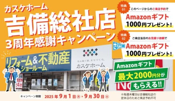 吉備総社店では3周年記念キャンペーンを開催中です。