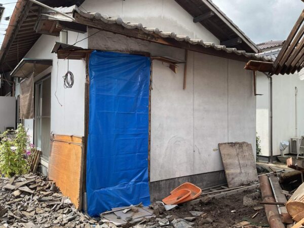 ブルーシートの向こうは生活をしている箇所になるため、土埃などが入ってしまわないようにブルーシートで養生をしました。
