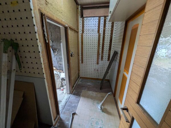 既存のトイレ、手洗い器、洗面化粧台、収納を外します。