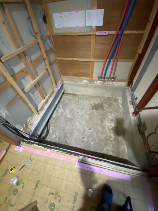 壁・床がALCコンクリートでできていることと、既存のユニットバスの下にハウスメーカー特有の