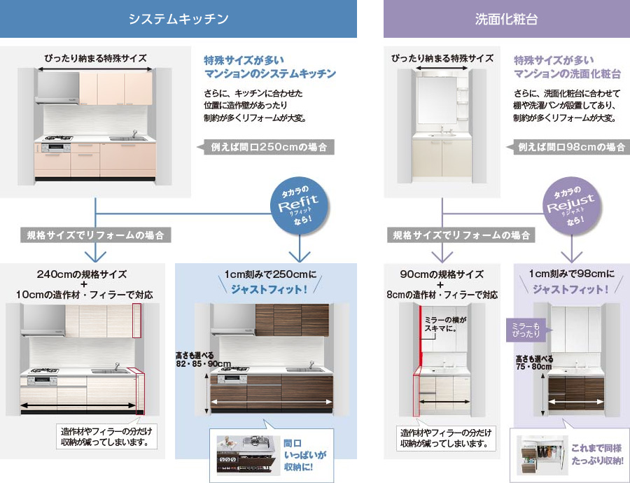 1㎝刻みでオーダーメイドが出来るので、マンションでも取付が可能となっています。