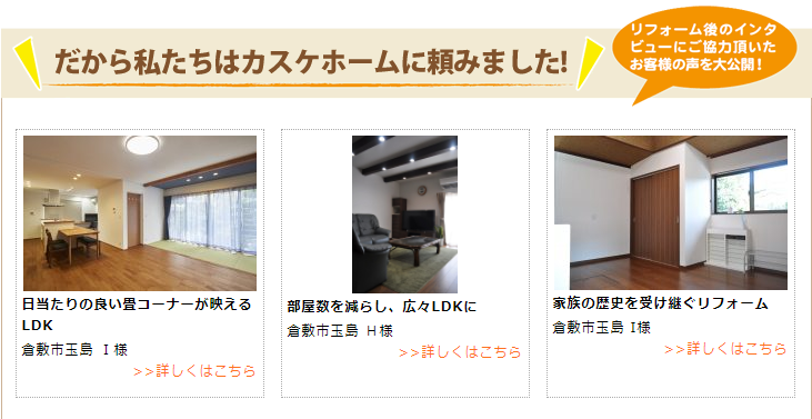 カスケホームではリフォーム後のインタビューにご協力いただいたお客様の声を公開しています!