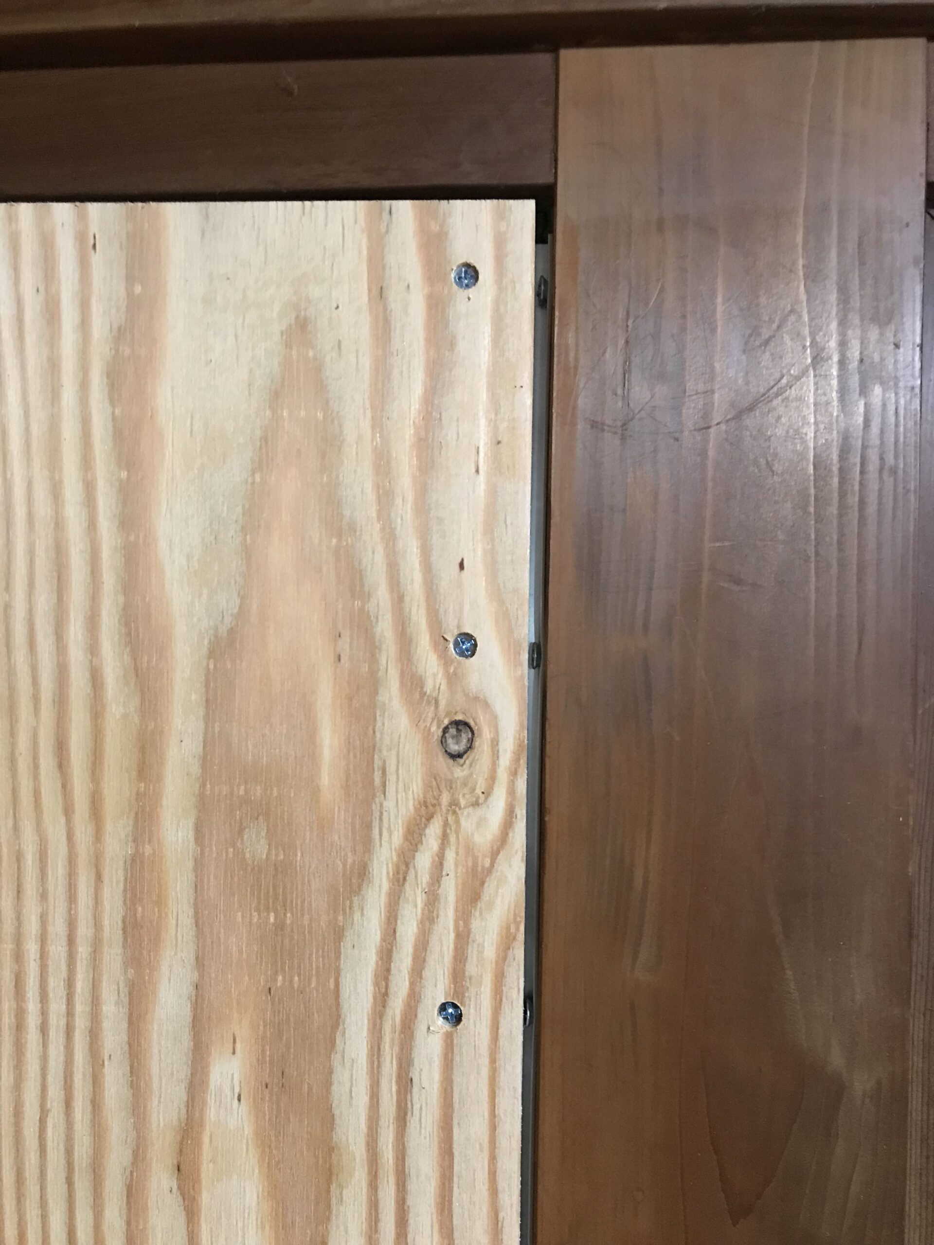 近づいてよくみると柱と構造用合板のスキマから指定されたLアングルが見えます。