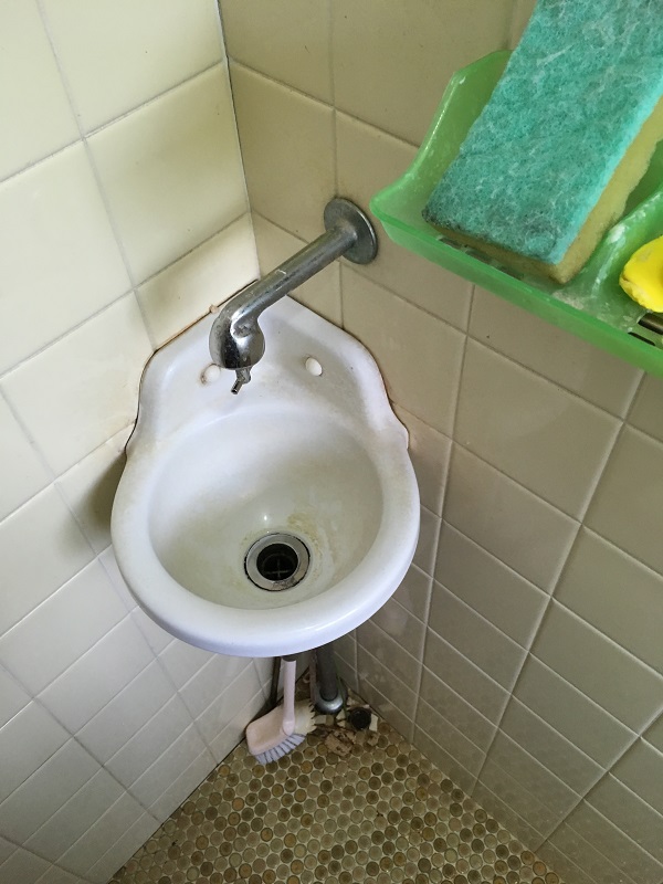 ビフォー 手洗い器。昔の衛生手洗い、洗いにくいのです・・・