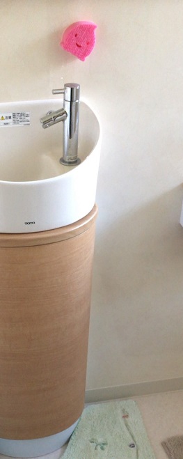 アフター スリムな手洗い器に。丸型なのもポイントです。
