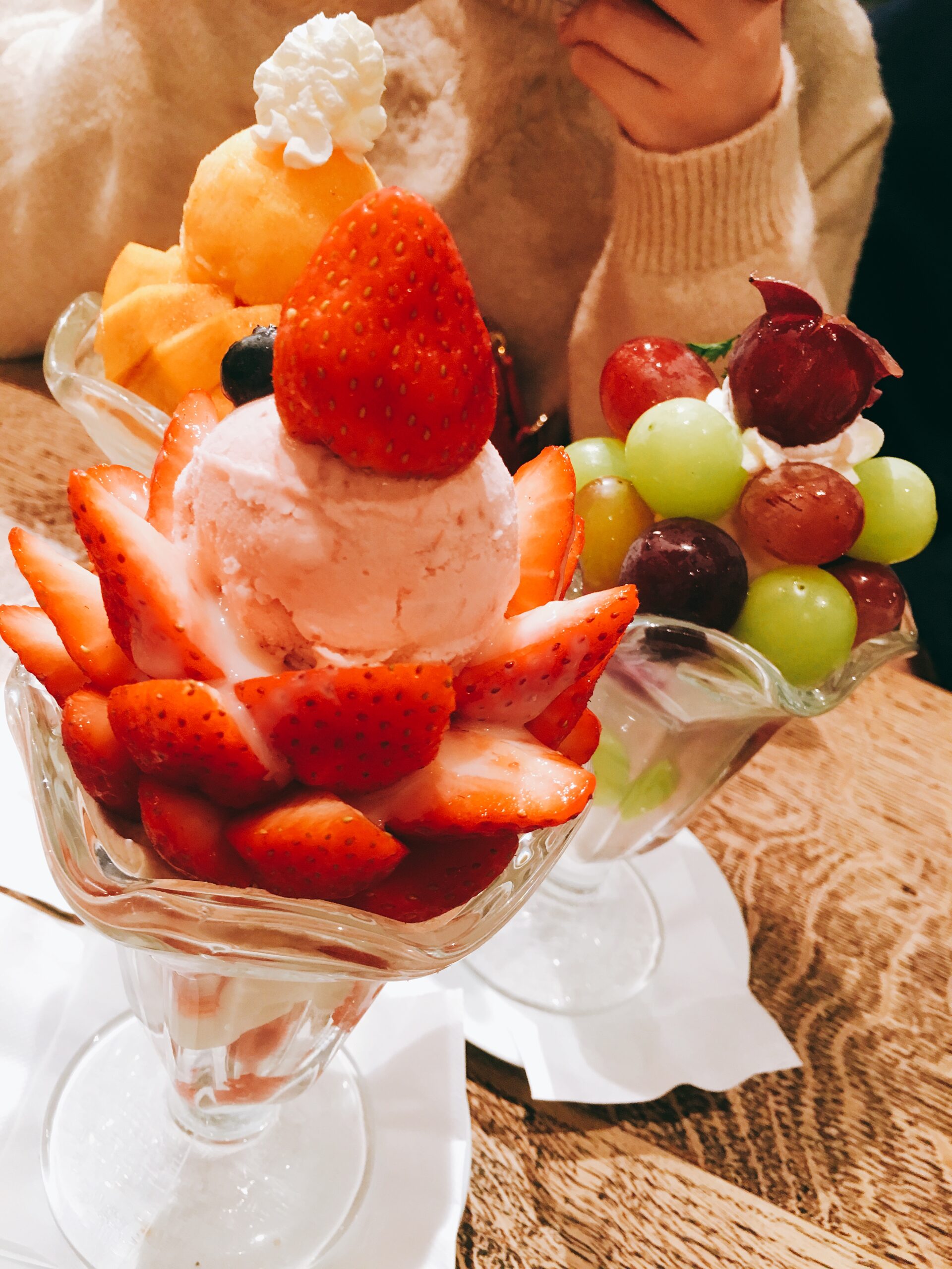 奥から、柿パフェ、ぶどうパフェ、いちごパフェです。