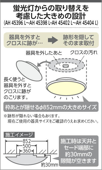 特徴は既存のライトを取り外した時に出来る跡形をカバーしてくれるんです!