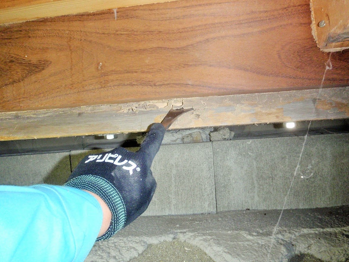 この様に蟻道(ぎどう)が出来ているという事はシロアリがいたという事です!
