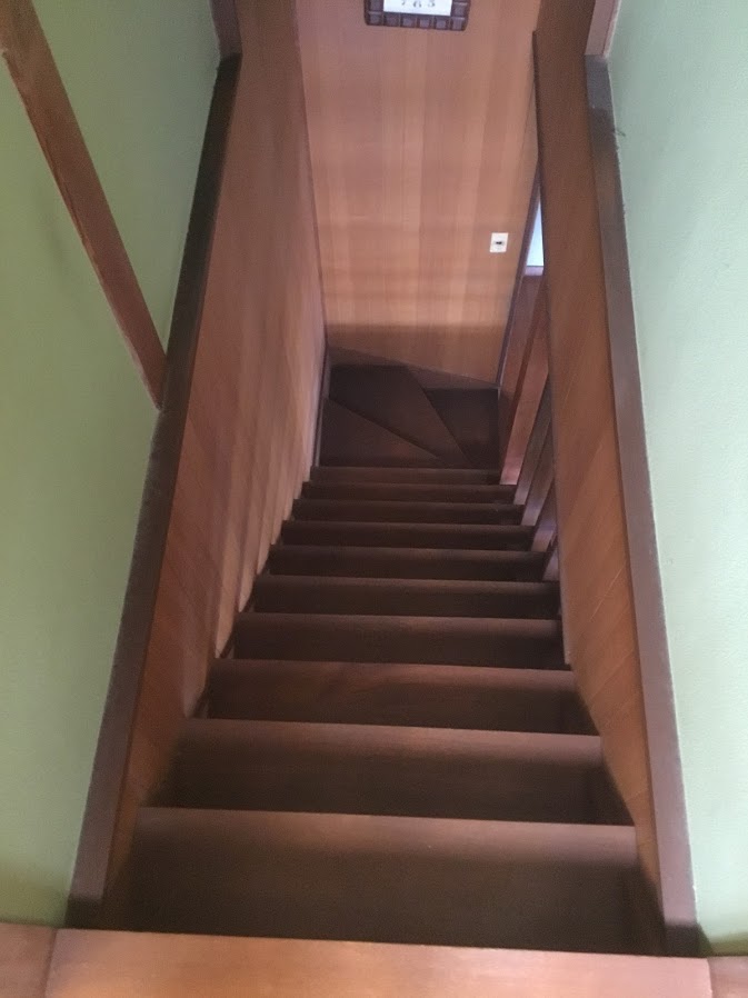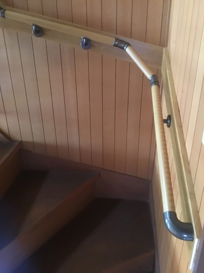 曲がり角だって一工夫して手すりを持って降りられるようにしています。