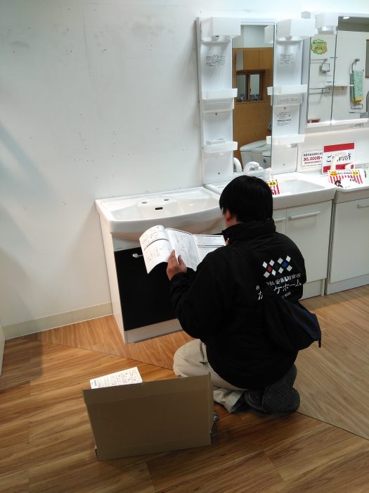 この商品を設置中の倉元店長代理をこっそり隠し撮り・・・。