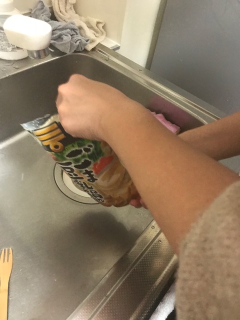鍋つゆを振る加瀬(これは普通。よく振ってからお使いください)