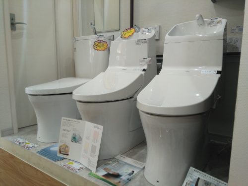 笠岡店にはズラリと9台のトイレが展示してあります。