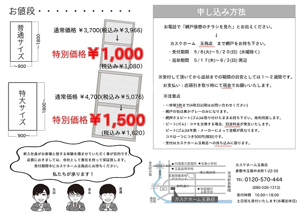 明日から網戸研修が始まり、網戸の張替えが特価でできます!
