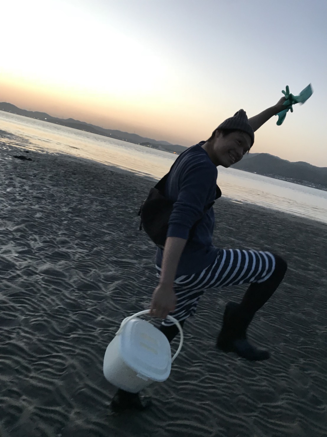 先日、児島から船に乗り、海の真ん中で潮干狩りをしました。