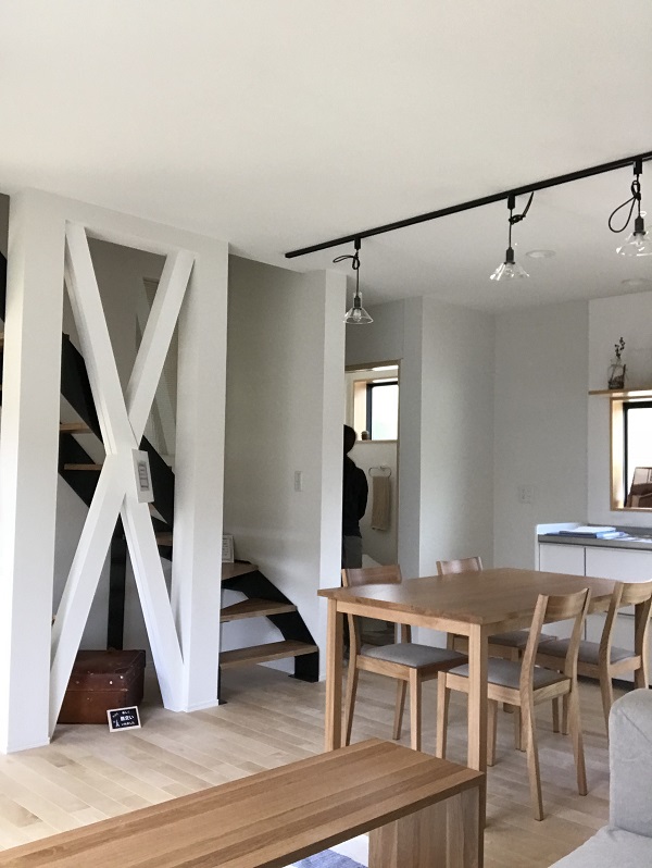 構造上、抜けない壁はあえて筋かいを見せることで、