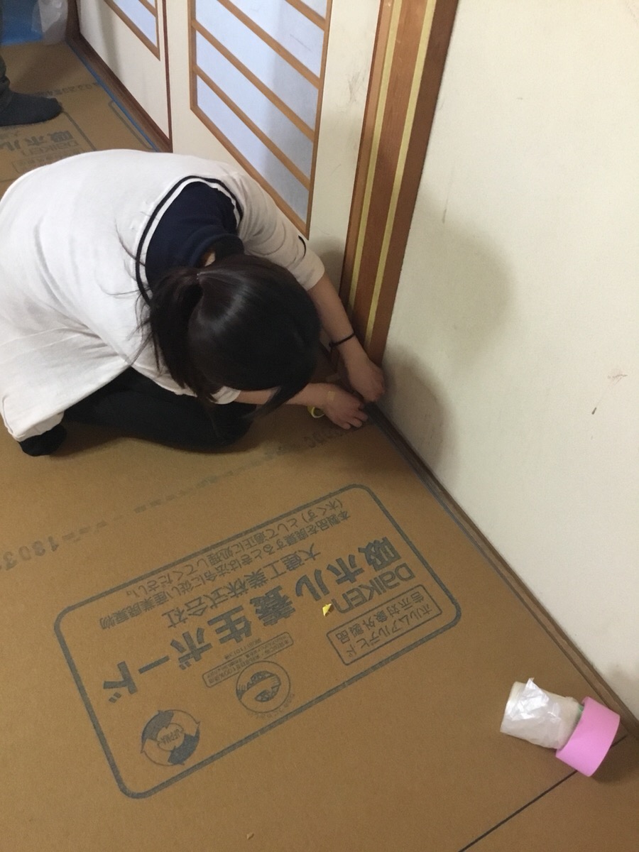 新卒の三人と一緒に、現場監督の原田先生福島先生による現場の養生基礎講座へ参加しました。