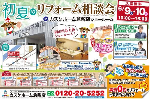 今週末、9日・10日は倉敷店で「初夏のリフォーム相談会」を開催します!