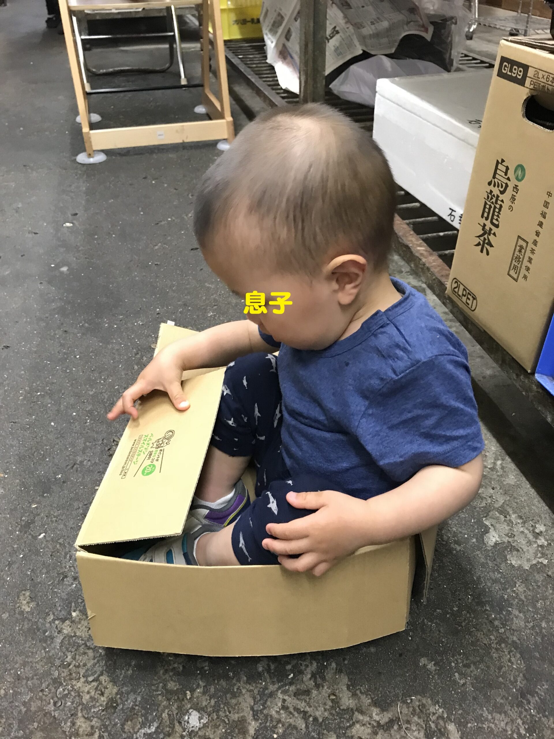 段ボールに入ることです。