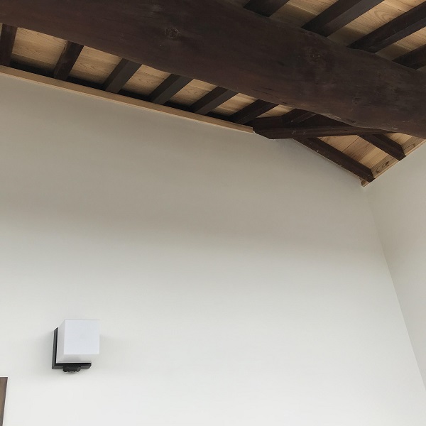 漆喰の白色とこの古民家ならではの木材の色と味!