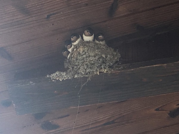 玉島店の倉庫の軒部分にツバメが巣を作っています!